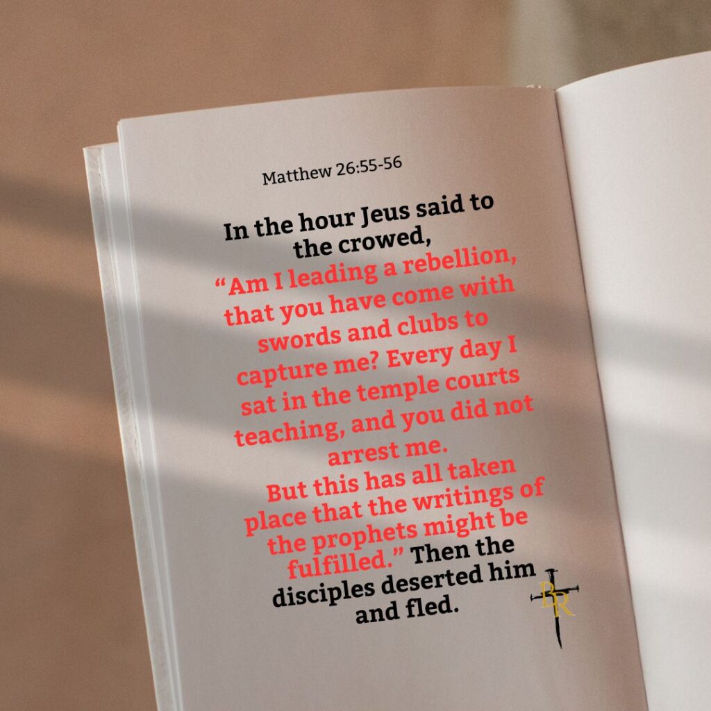 Uncategorized My Daily Bread – Matthew 26:55-56 John October 21, 2025 Share: Facebook X #brokenredeed #4thWatch #faith #love #Romans116